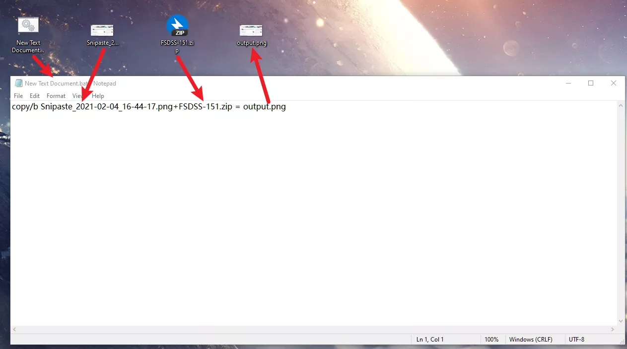 copy/b 你的图片名字.png+你的压缩包名字.zip = 你的输出图片的名字.png